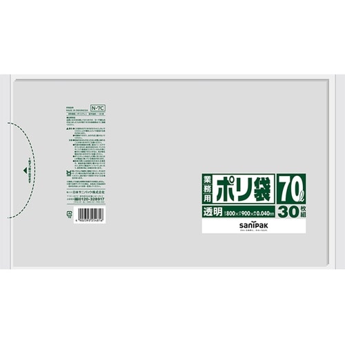 日本サニパック 業務用ポリ袋 70L 透明 30枚×12冊入 N−7C A099-3258