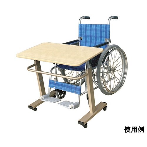 天板を持ち上げるだけで、高さ調節が可能です。使う人の体型、使用用途に合わせ、H590ー740mm(25mmピッチ、6段階)で高さを調節可能です。車椅子をご利用の方にもお使いいただけます。 |
