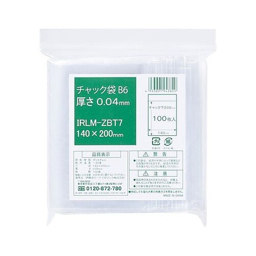 伊藤忠リーテイル チャック袋 B6 140X200mm 1ケース(100枚×50袋入) IRLM−ZBT7 A099-3628
