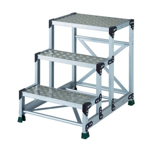 踏ざん間隔250mmの段差が緩やかで昇降しやすい作業用踏台です。踏面縞板タイプです。安定性・固定性に優れた工場向け作業用踏台です。滑り止めキャップにゴミがたまりにくくなっています。 |