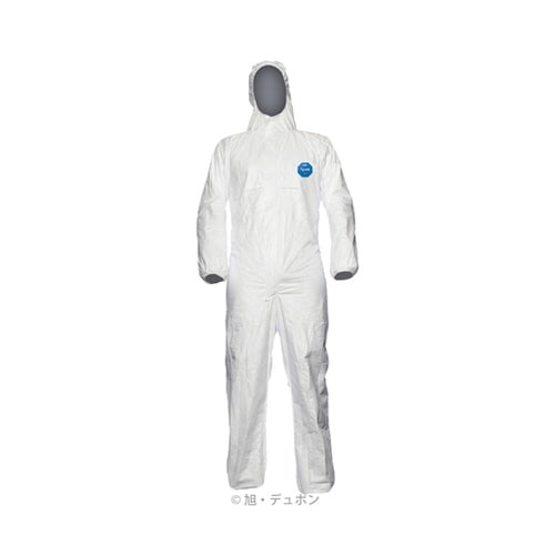 乾燥粒子に対するバリア効果を発揮する粉じん対策用防護服です。防護服に要求される3つの要素:バリア性、耐久性、快適性のバランスに優れ、低発じん性・低帯電性・耐水性を有したタイベックRを使用しています。 |