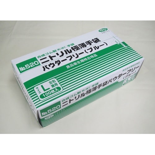 EBUNO ニトリル極薄手袋 パウダーフリー ブルー L 100枚×20箱 520BL A099-3709