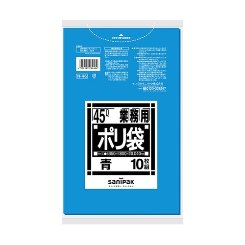 日本サニパック 業務用ポリ袋 Nシリーズ 45L 青 厚口 10枚×40冊入 N−46 A099-3818