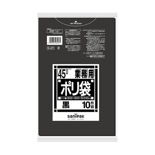 日本サニパック 業務用ポリ袋 Nシリーズ 45L 黒 厚口 10枚×40冊入 N−47 A099-3819