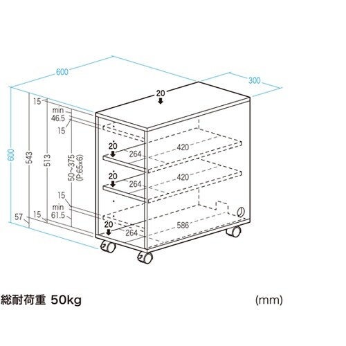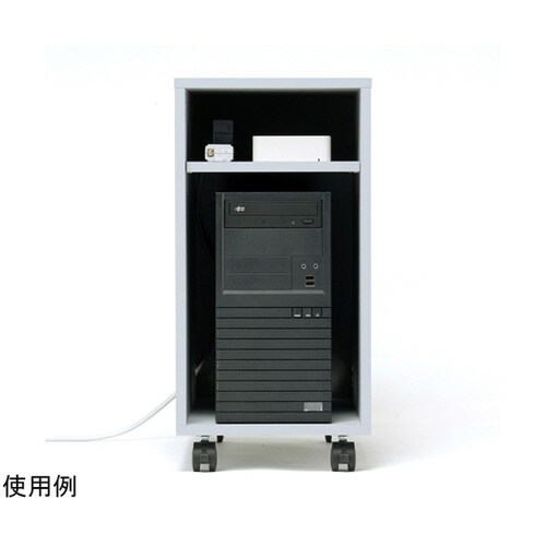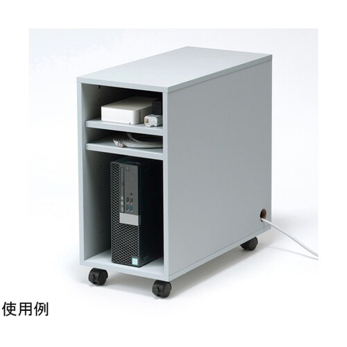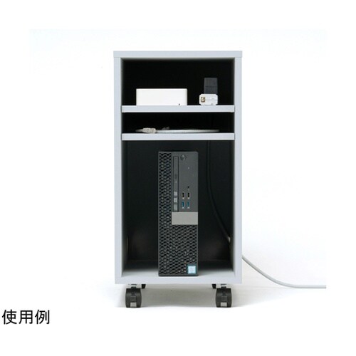 木製の機器収納ボックスです。棚板を2枚標準装備しています。棚板の位置を6段階(6mmピッチ)で変更することができます。背面パネル下部にはケーブル口があります。 |
