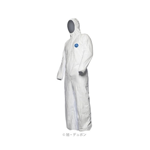 乾燥粒子に対するバリア効果を発揮する粉じん対策用防護服です。防護服に要求される3つの要素:バリア性、耐久性、快適性のバランスに優れ、低発じん性・低帯電性・耐水性を有したタイベックRを使用しています。 |
