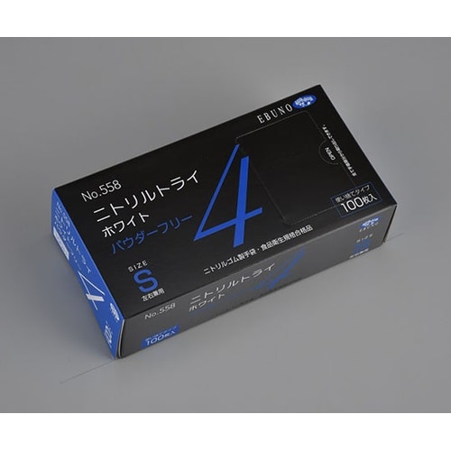 ニトリルトライ4 ホワイト パウダーフリー S 1ケース(100枚×30箱入) 558