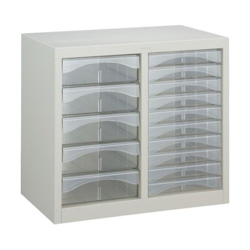 引き出しはクリアで、内部の様子がよく分かります。書類などの管理だけでなく、小物部品の整理にも適してます。 |