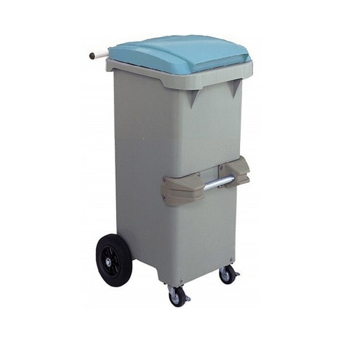 施設内・外のゴミ分別収集、搬送に便利なダストカートです。移動、走行性能に優れた4輪キャスター仕様。前輪直径75mm(ストッパー付き)、後輪直径200mmの大型キャスター。