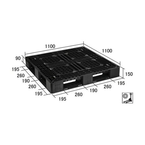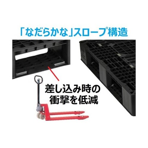 一体成形品で軽量化と強度を両立しています。資源の有効利用と環境を考えたリサイクル材料使用のパレットです。平置き、段積み用の軽量パレットです。 |