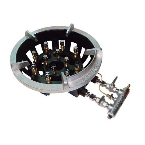 ガス接続:3分口(φ9.5mm) | バーナー数:9 | 寸胴鍋の使用範囲:最大33cmまで | 重量:13.27kg | 外寸1(mm):330×4…