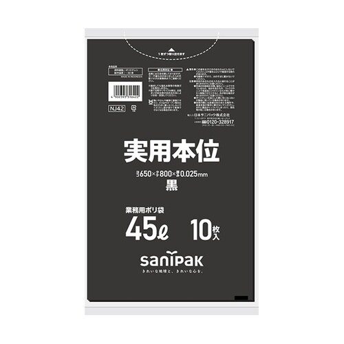 日本サニパック 業務用ゴミ袋 実用本位 45L 黒 10枚×60冊入 NJ42 A099-3984