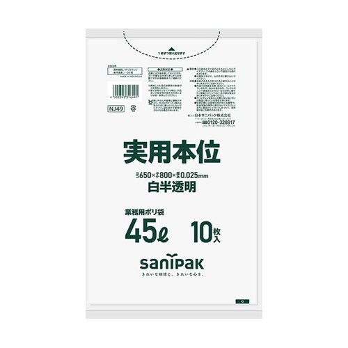 日本サニパック 業務用ゴミ袋 実用本位 45L 白半透明 10枚×60冊入 NJ49 A099-3985