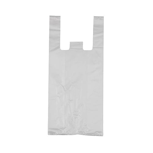 中身が見える定番の半透明レジ袋です。開きやすいエンボス加工と吊るし紐付きです。 |