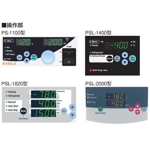 槽内と反応容器内を撹拌するので、試料温度を精度よく均一に保持します。PS−1100型のヒータは水・オイル兼用で、水浴による合成反応や、オイルによる恒温での合成、重合反応などに使用できます。 |