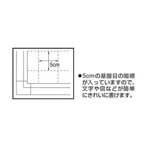 5cmピッチで暗線が入っていますので、文字や図・表などが簡単にきれいに書けます。 |