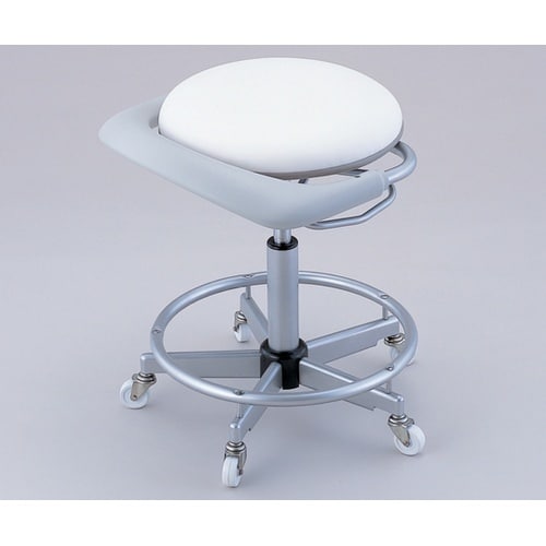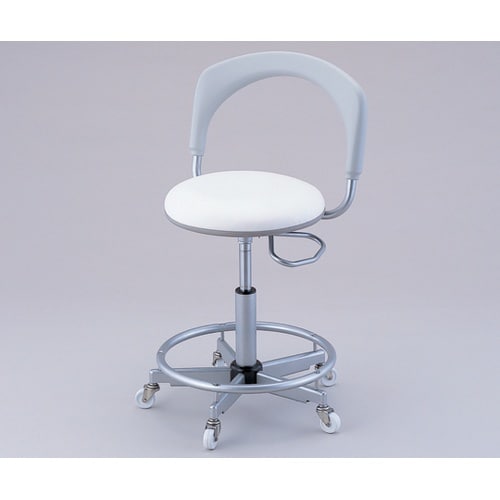 座面に抗菌・防汚加工を施したレザーを使用しています。アルコール類での清拭を行っても、柔軟性を保ちます。背もたれを折りたたむことで、実験台・作業台の下に収納できます。 |