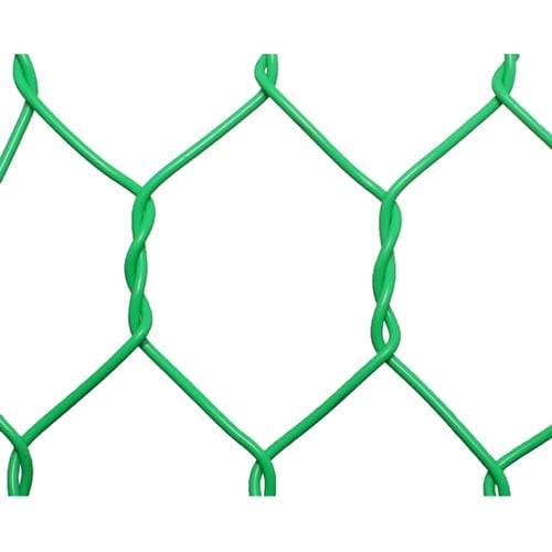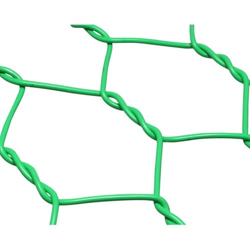 表面にビニール被覆を施し線材を交互にねじり合わせ六角形の網目をした金網です。軽量で取り扱いが容易で切断したり引き伸ばしてもほつれる事が少ない。
