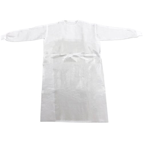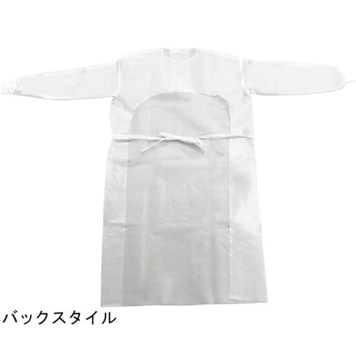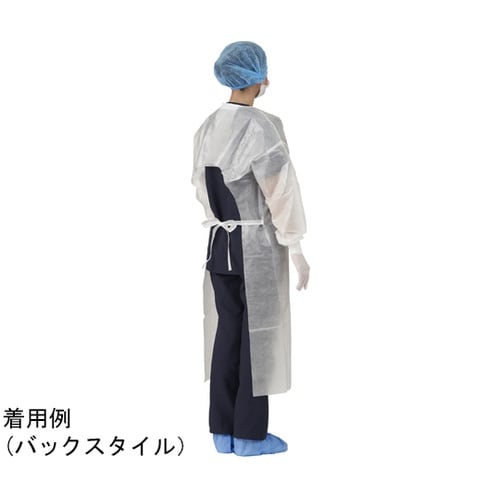 患者様の見慣れた色『ホワイト』のアイソレーションガウンです。外側全面にラミネート加工を施しているため、防水性に優れています(薬剤耐性試験済み)。袖口にはメリヤス編み生地を使用。 |