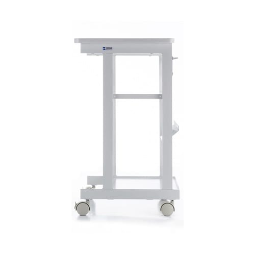 紙送りを考慮した切欠き形状の天板です。ミニマムサイズのプリンター台です。裏面はフレーム構造になっているため、用紙の送りを妨げるものがほとんどありません。中棚は引っ掛け式で3段階の設置ができます。 |