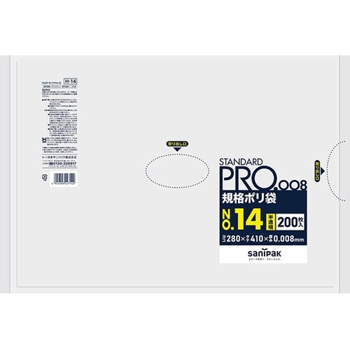 日本サニパック 規格ポリ袋 HDPE 半透明 No.14 200枚×30冊入 H−14 A099-4520