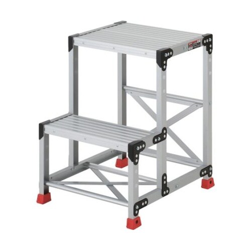 底面にも筋交いが入っており、安定感に優れています。オールアルマイト仕上げです。滑り止めキャップはスクリベットで取り付けていますのでプラスドライバーでの交換が可能なアルミ製作業用踏台です。 |