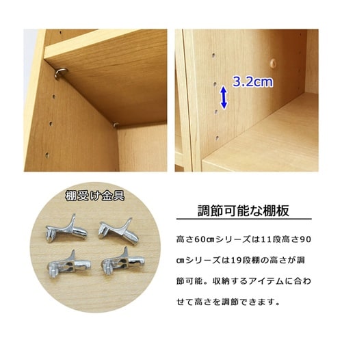 縦と横に連結できる多目的収納オープンラックです。高さは60cmと90cmの2サイズ、幅は20cm,25cm,30cm,45cm,60cmの5サイズ、合計10アイテム。 |