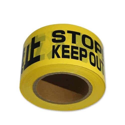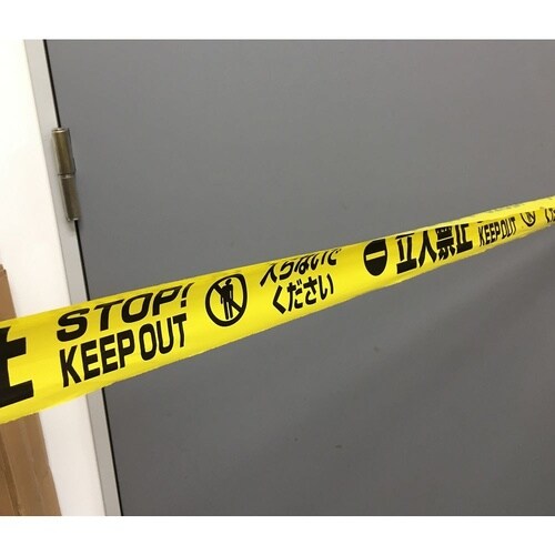 バリケードテープ 幅70mm×130m 『立入禁止 STOP! KEEP OUT 入らないでください』 黄/黒字 1ケース(20巻入) 11111−C