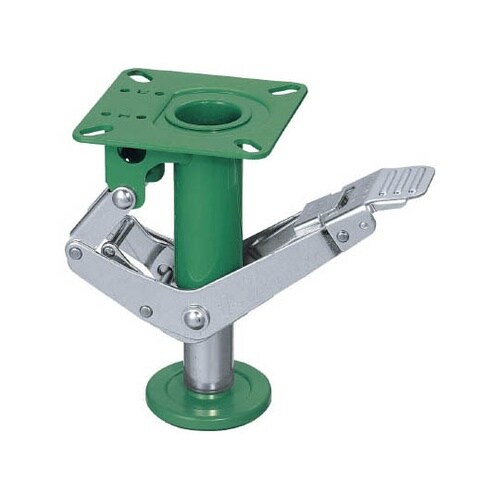 全圧約392N(約40kgf)の内蔵スプリングの働きによりベースが約5mm伸縮しますので、凹みのある床面に対応できます。最大積載質量を越えないように積載してください。キャスター付台車のストッパーです。 |
