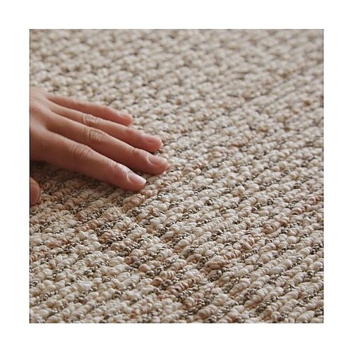 ナチュラルな雰囲気にポイントで光沢糸をあしらった、シンプルなピンストライプ。全体に細かい凹凸のテクスチャーが入っており、飽きの来ないベーシックなカーペット。