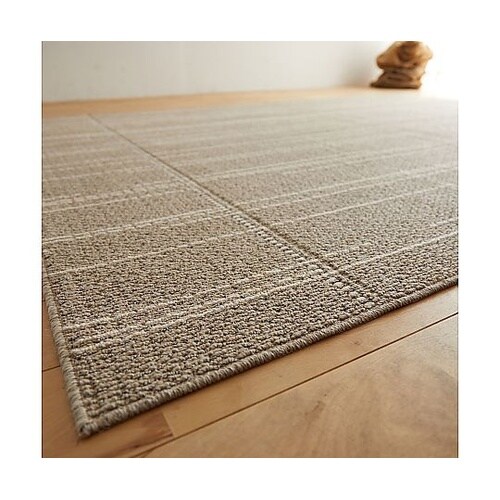 ナチュラルな雰囲気にポイントで光沢糸をあしらった、シンプルなピンストライプ。全体に細かい凹凸のテクスチャーが入っており、飽きの来ないベーシックなカーペット。