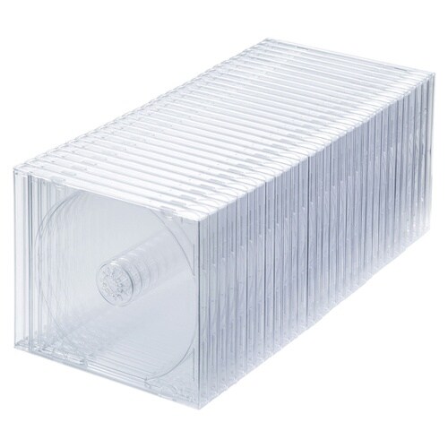 一般的な音楽CDのケースと同じ厚さ10mmのプラケースです。100%バージンPS樹脂材を使用しており臭いが少なく耐久性も高い高品質なプラケースです。 |