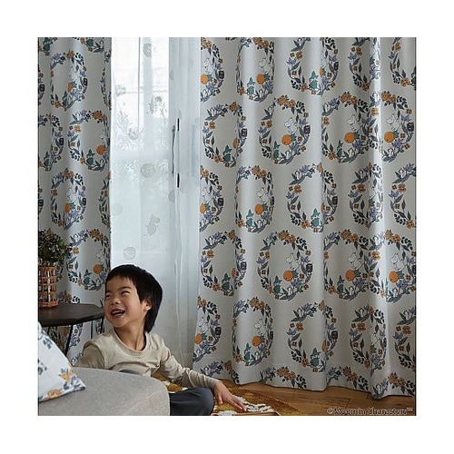 MOOMIN 遮光カーテン フルーツガーデン 100×178cm ライトグレー 1枚入 A1036 A099-5054