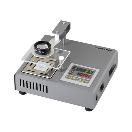 化合物・樹脂・ワックス等の溶融点・軟化点が容易に測定できます。溶け始め、溶け終わりの温度が記録できます(最大4回可能)。設定温度、測定温度ともにデジタル表示で見やすいです。 |