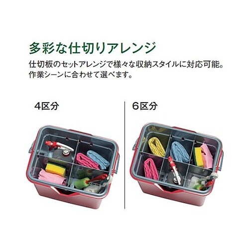 1Lのきざみ目盛付ホースがバケツからはずれないホースキーパー付仕切板のつけかえで様々な収納スタイルに対応トイレ清掃から各種メンテナンスまで幅広く活躍します。 |