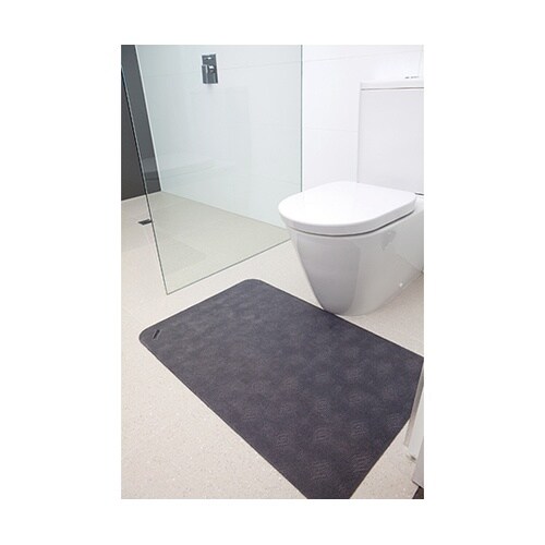 ベッドや椅子から立ち上がるときの尿漏れ対策、および、リフト浴や特殊浴のお風呂上がりに最適な吸水フロアマットです。ポータブルトイレ・簡易便器・点滴スタンドのマットとしても使用できます。 |