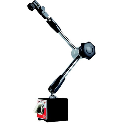 一つのハンドルの操作で、様々な姿勢を瞬時にロックできます。精度を要求される計測作業に最適です。微調整機能付・アリ溝付で、各種ダイヤルゲージを保持可能です。