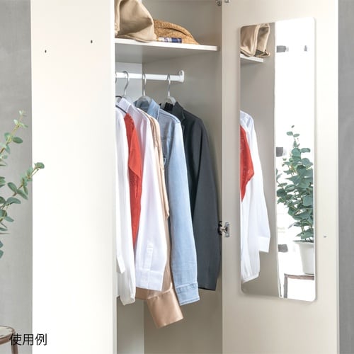 衝撃に強いPET樹脂性ミラーのため、安心・安全です。強粘着両面テープ6カ所固定タイプです。 |