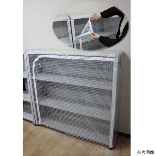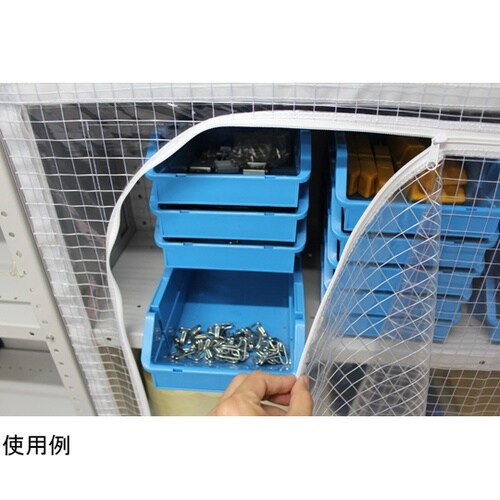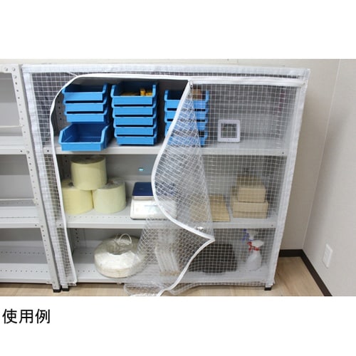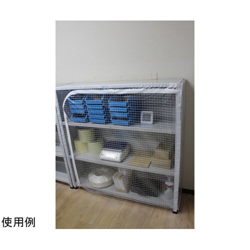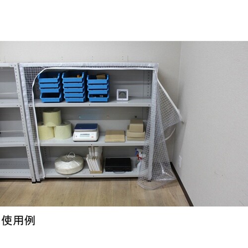 普段は防塵として使用しながら、災害に備えて保管物の飛び出し緩和も兼ねられます。取付けは面ファスナーなので、工具がいらず簡単。棚の材質も問いません。 |