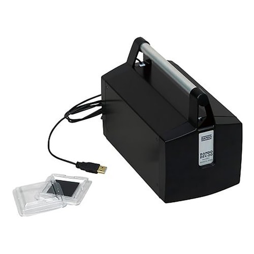 異物検査の際、ヒトによるバラつきが生じやすい20μm程度の異物でも簡易に検出できます。パソコンとフリーソフトを併用することで、検出した異物の個数とサイズを簡易に短時間(1分程度)で定量化できます。 |