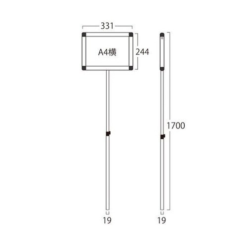 プラカードポール ホワイトボード A4横 ベースセット PCPWB−A4Y−2SET