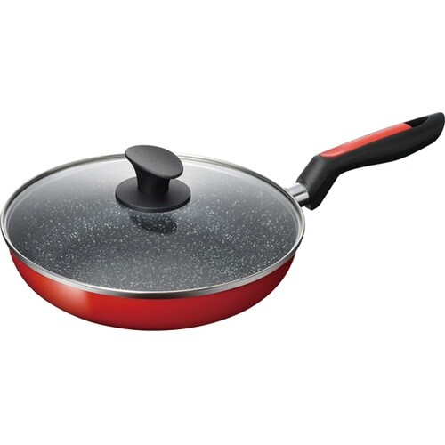 焼く、炒めるといたフライパン調理の他、蒸し焼きもできます。調理中の様子を確認できるガラス製の蓋付きで調理の幅が広がります。こびりつきにくく、調理もお手入れも快適。鮮やかな赤色が印象的です。