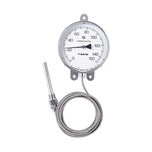 透明板を割れにくいポリカーボネート仕様に変更した製品となります。離れた場所の温度を測定する液体封入式の堅牢な工業用温度計です。感温部内の液体の膨張・収縮により温度を表示します。電源不要です。 |