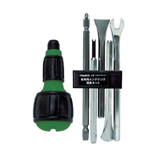 簡単な車両整備に役立つメンテナンスキットです。パーツの保管に便利なホルダー付です。内張り外し、バッテリーキャップの取り外し、ガスケット類の汚れ落とし、タイヤチューブの虫回しに。 |