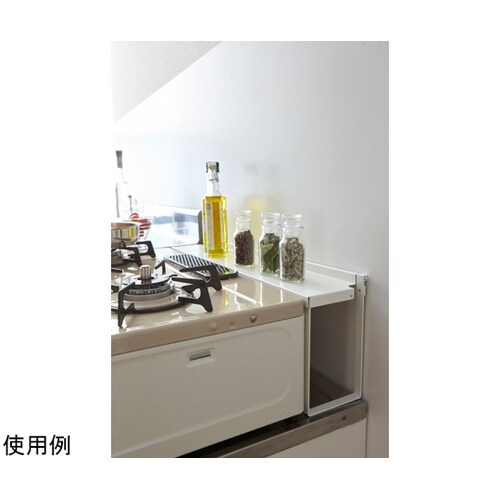 ガスコンロ奥の隙間に置くだけ!油はねや調理汚れをしっかりガードしてくれるラック。調理道具やスパイスの一時置きにも便利!ガスホースを通せる穴付き。 |