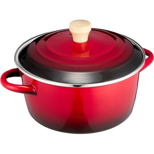 ホーロー製品は酸やアルカリに強いので、素材を生かした煮込み料理やジャム作りに最適です。表面がガラス質なので、においがつきにくく、滑らかで洗いやすいので清潔さを保ちます。 |