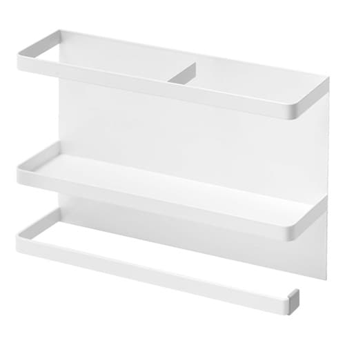 冷蔵庫側面にマグネットで簡単取り付け。よく使うラップとキッチンペーパーを一括収納!大判タイプの海外製キッチンペーパーロールも収納できます。 |