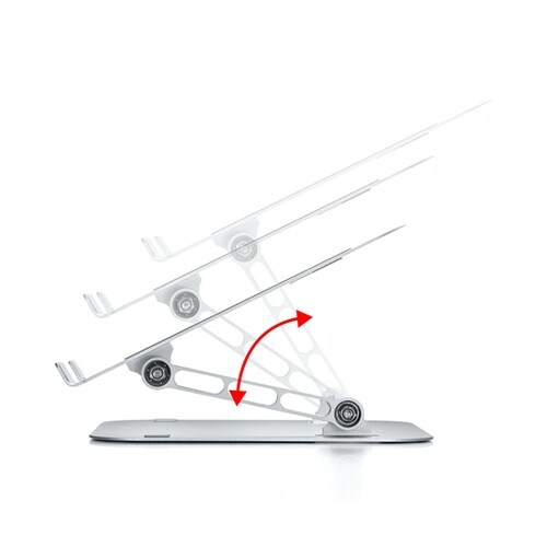 2つのヒンジを搭載し角度と高さの調整ができるノートパソコン用デスクトップスタンドです。 |