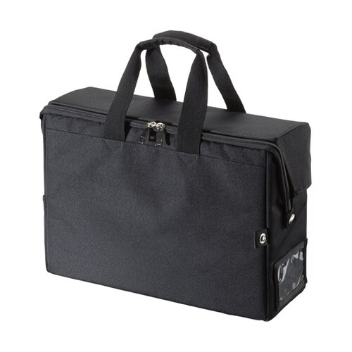 場所を取らないスライドオープン式のフタでスムーズな出し入れが可能です。2サイズの仕切り板で書類だけでなく小物を分けて収納できます。ワイヤーが通せるセキュリティホール付きです。 |
