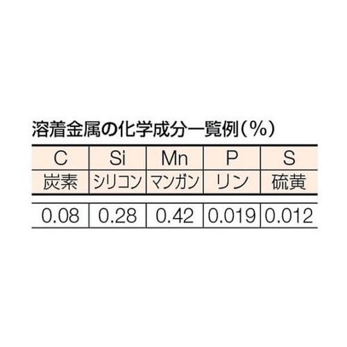 下向および水平すみ肉溶接において特に良好な作業性を有する高酸化チタン系溶接棒で、アークは安定し、スパッタも少なく、スラグのはく離性が良好です。
